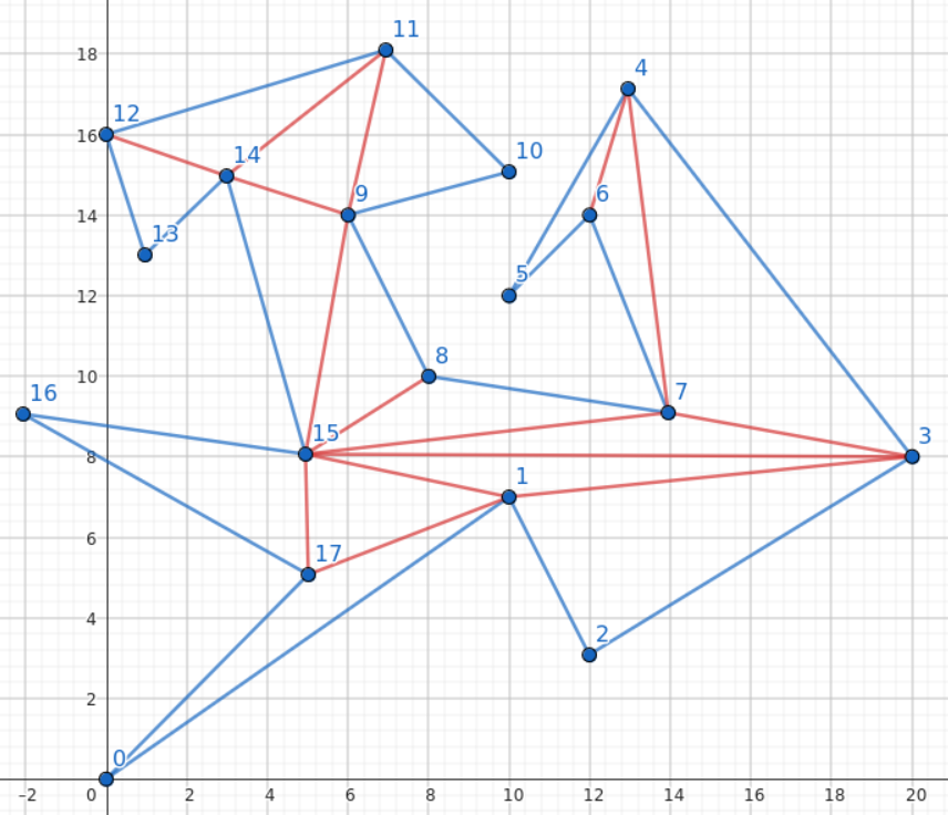 Dany jest wielokąt prosty. Znajdź jedną z jego poprawnych triangulacji.